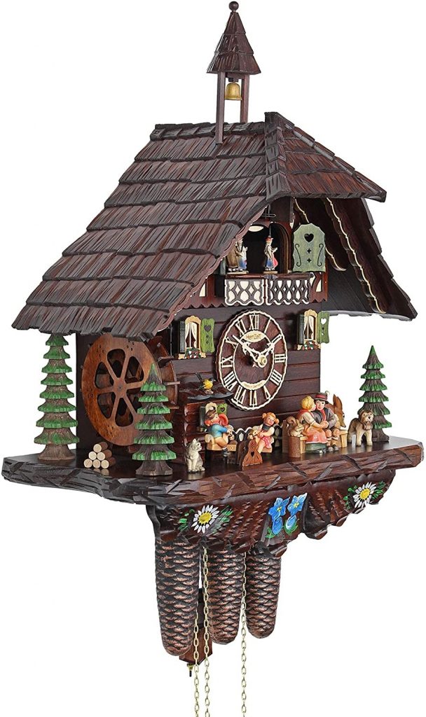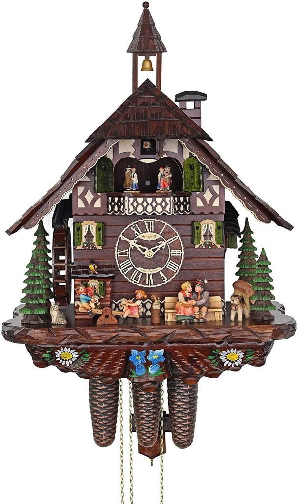 This clock is a typical Black Forest house and there are so many things that I find special about it. It has the signature of Adolf Herr at the back which makes this clock even more authentic and something that I can value forever. In addition, it is more colorful as compared to other chalet-style cuckoo clocks that I have ever seen. Staring at this clock really makes me happy.